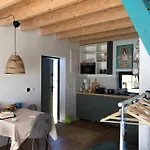 Een ingerichte kitchenette heeft keukengerei zodat gasten hun maaltijden kunnen bereiden.